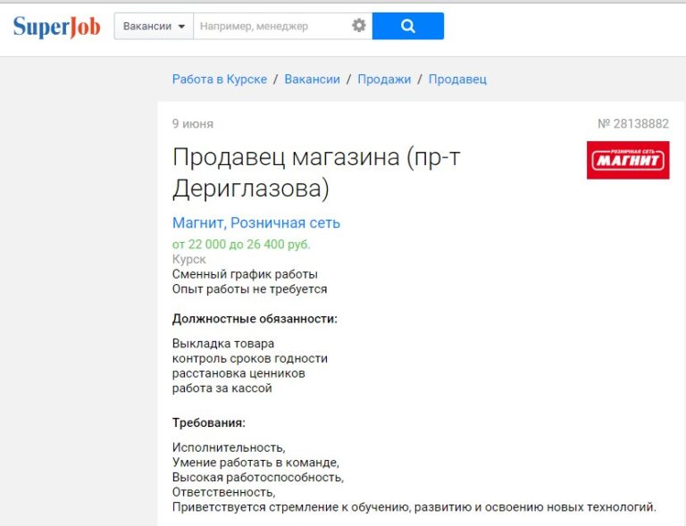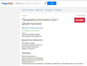 Вакансия Продавец магазина Магнит-Косметик